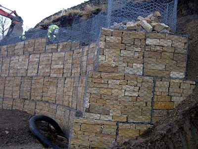 格賓籠是由金屬線材編織的角形網(wǎng)(六角網(wǎng))制成的網(wǎng)箱。石籠網(wǎng)由高抗腐蝕、高強(qiáng)度、具有延展性的低碳鋼絲或者包覆PVC的以上鋼絲使用機(jī)械編織而成,使用該網(wǎng)制作而成的箱型結(jié)構(gòu)就是石籠。